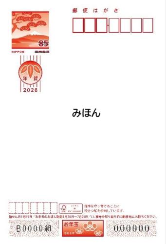 オンライン販売  2026年(令和8年)年賀はがき85円無地 1枚 販売価格 : 84円 販売率 : 商品の発送は10/30(木)以降となります。