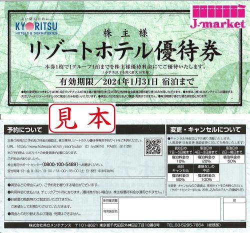共立メンテナンス株主優待券 リゾートホテル優待券 有効期限:2026年7月31日まで