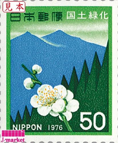 旧柄(1976年 国土緑化 杉林・筑波山と梅) 普通切手 50円 【50円×100枚シート】