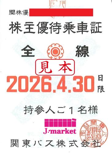 関東バス 株主優待乗車証 2026年4月30日まで有効