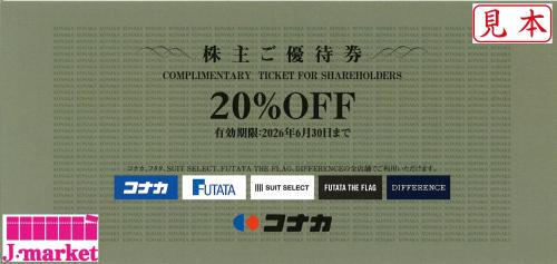 紳士服コナカ・SUIT SELECT 株主優待券 20%off 有効期限:2026年6月30日