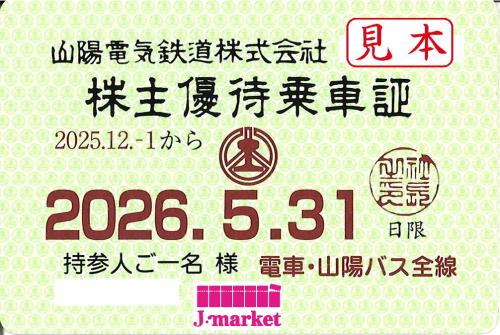 山陽電気鉄道/山陽鉄道 株主優待乗車証定期券式(電車・バス全線) 2026年5月31日まで