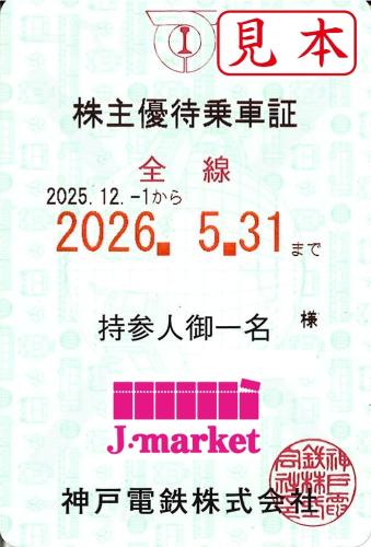 神戸電鉄 株主優待乗車証 定期券(電車全線)【水色】 2026年5月31日まで