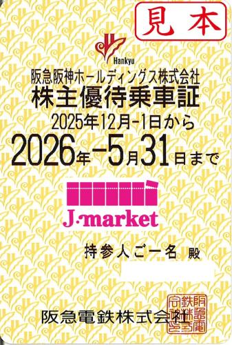 阪急阪神HD/阪急電鉄 株主優待乗車証定期券式 2026年5月31日まで