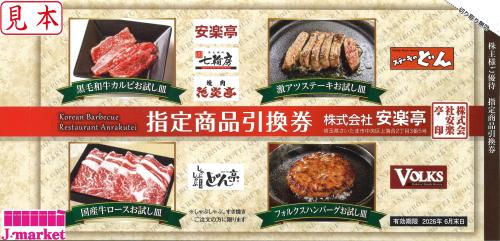 安楽亭株主優待券 指定商品引換券 有効期限:2026年6月30日