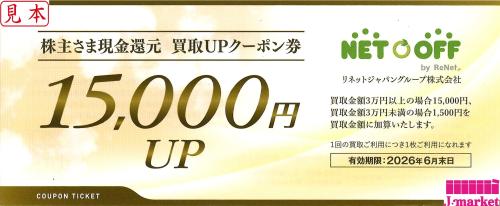 ネットオフ(NETOFF) 買取UPクーポン 15,000円分 2026年6月末