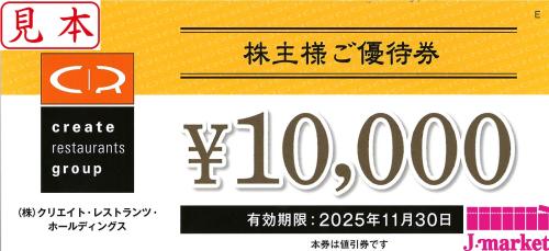 クリエイトレストランツホールディングス株主優待券 10,000円 有効期限:2026年5月31日