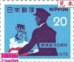 旧柄(郵便番号5周年 郵便外務員とナンバー君) 普通切手 20円 【20円×100枚シート】