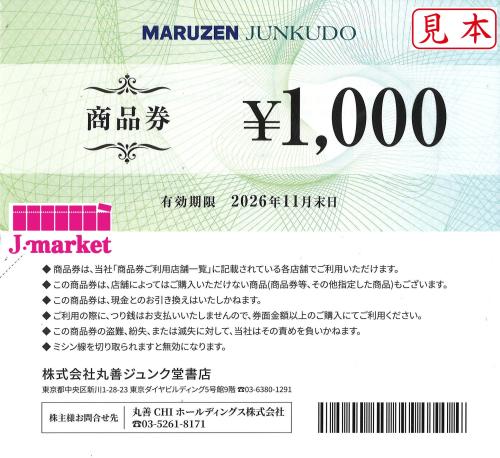 丸善(MARUZEN)株主優待券 商品券 1000円 2026年11月30日