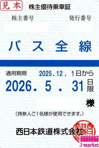 西日本鉄道 西鉄 株主優待乗車証定期券式(バス全線) 2026年5月31日まで