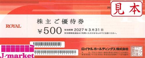 ロイヤルホールディングス株主優待券 500円 有効期限2027年3月31日