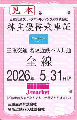 三重交通グループHD 三重交通/名阪近鉄バス共通路線バス全線乗車証 定期券式 2026年5月31日