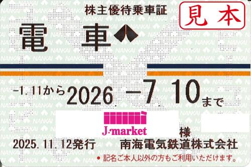 南海電気鉄道 株主優待乗車証 定期券式(電車全線) 2026年7月10日まで