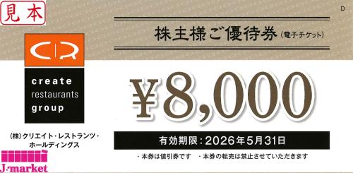 クリエイトレストランツホールディングス株主優待券 8,000円 有効期限:2026年5月31日