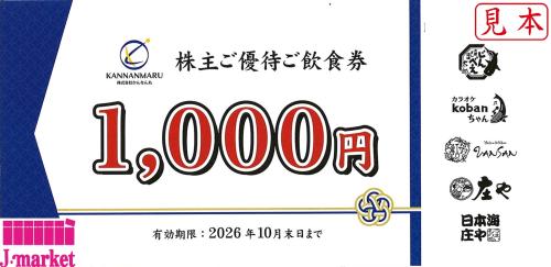 かんなん丸株主優待券 1,000円 有効期限:2026年10月31日