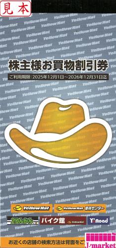 イエローハット株主様お買物割引券 15000円分(300円×50枚) 有効期限:26年12月31日