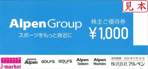 アルペン株主優待券 1000円 有効期限:2026年9月30日まで
