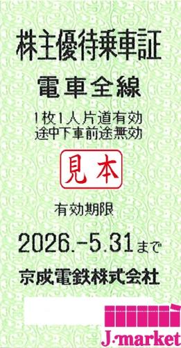 京成電鉄 株主優待乗車証回数券式 2026年5月31日まで