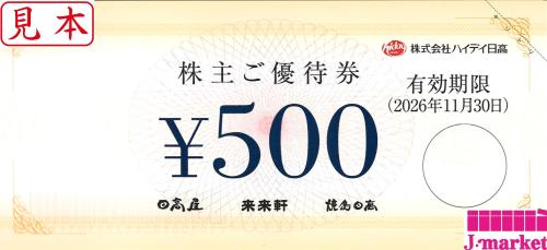 ハイデイ日高 株主優待券 500円 有効期限:2026年11月30日