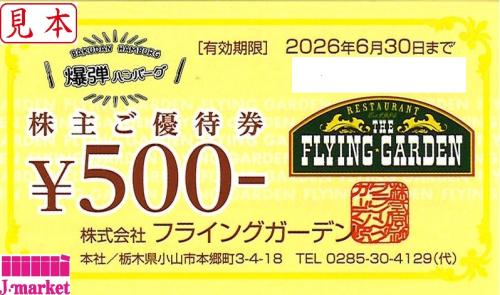 フライングガーデン 株主優待券 500円 2026年6月30日