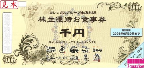 ヨシックス株主優待(や台やグループ全店共通)お食事券 1000円 2026年6月30日
