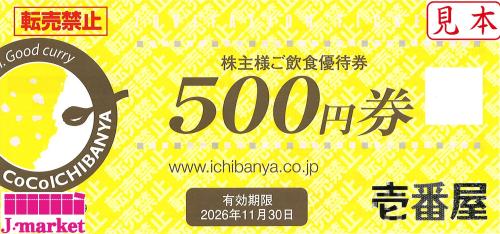 CoCo壱番屋 株主様ご飲食優待券(ココイチ) 500円 2026年11月30日