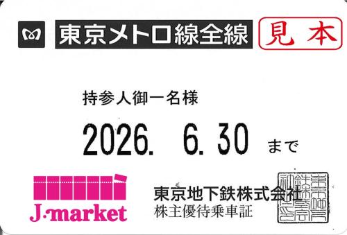 - 【新券】東京メトロ 株主優待乗車証定期券式 (電車全線) 2026年6月30日まで