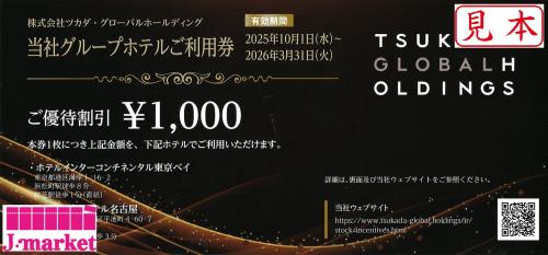 ツカダ・グローバルホールディング グループホテルご利用券1000円 有効期限2026年3月31日