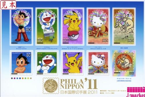 【特殊切手シール80円×10枚シート】日本国際切手展2011 アトム ピカチュウ 額面800円分