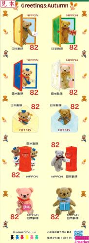 【特殊切手 シール 82円×10枚シート】秋のグリーティング ぽすくま 額面820円分