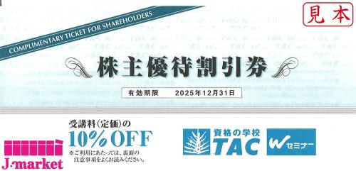 TAC(タック)株主優待券 資格受講料10%OFF 2025年12月31日まで