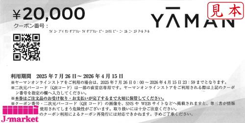 【番号通知 可能】ヤーマン YAMAN 株主優待 20,000円 2026年4月15日まで