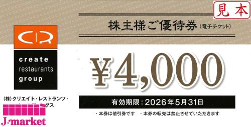 【番号通知可能】クリエイトレストランツホールディングス株主優待券 4,000円券
