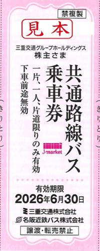 三重交通/名阪近鉄バス共通路線バス 乗車券 2026年6月30日まで
