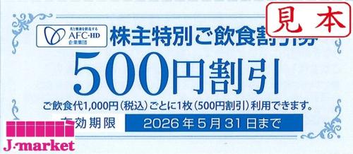 AFC-HDグループ 株主特別ご飲食割引券500円 有効期限2026年5月31日