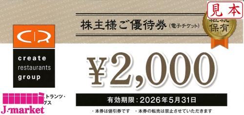 【番号通知可能】クリエイトレストランツホールディングス株主優待券 2,000円券