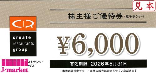 【番号通知可能】クリエイトレストランツホールディングス株主優待券 6,000円券
