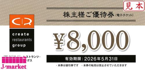 【番号通知可能】クリエイトレストランツホールディングス株主優待券 8,000円券