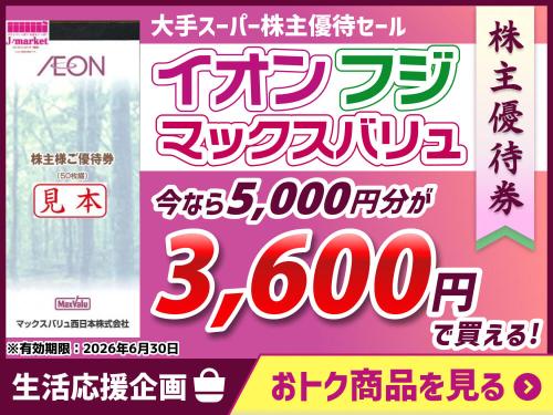 イオン/マックスバリュ/フジご優待券 5,000円分(100円券×50枚) 期限2026年6月30日
