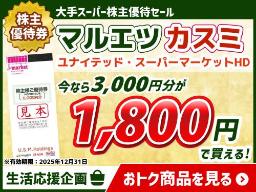 ユナイテッドスーパーマーケット優待 マルエツ/カスミ3000円分(100円×30枚)25/12/31