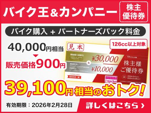 バイク王&カンパニー株主優待券 車輌購入時割引30,000円分&車両購入時パートナーズパック割引