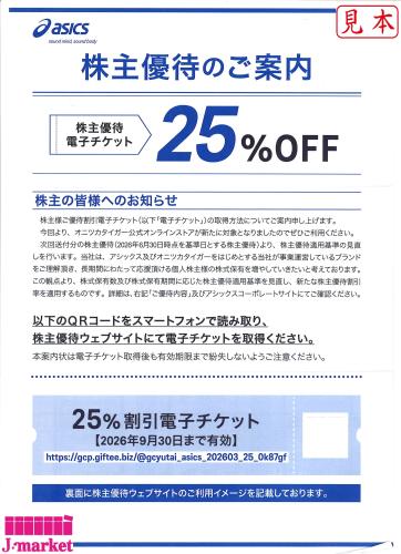 【番号通知専用】アシックス株主優待 25%割引 ECサイト/直営店舗 各10枚セット 9/30まで