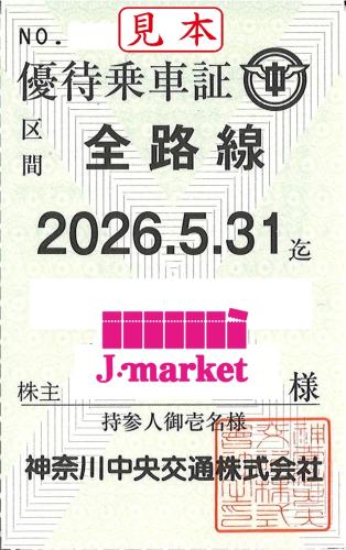 神奈川中央交通(神奈中) 株主優待乗車券(定期券式) 2026年5月31日まで