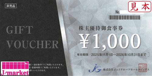 ジェイグループHD株主優待お食事券 1000円 イチバのウラ・吟醸マグ・It's a PIZZAなど