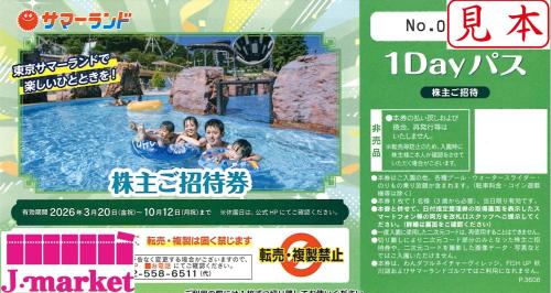 東京サマーランド株主優待券 【株主ご招待券】 2026年10月12日まで ※夏季期間OK