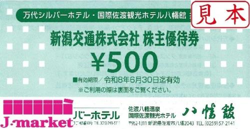 新潟交通 株主優待券500円 万代シルバーホテル 八幡館 2026年6月30日