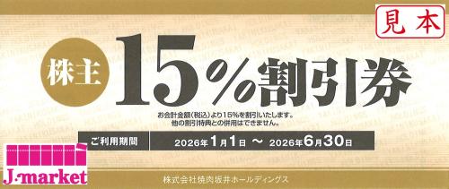 焼肉坂井ホールディングス 株主優待券 15%割引券 2026年6月30日