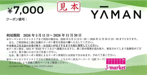 【番号通知 可能】ヤーマン YAMAN 株主優待 7000円 2026年11月30日