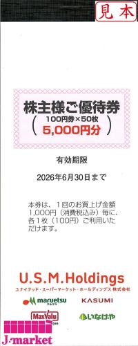 ユナイテッドスーパーマーケット優待 マルエツ/カスミ5000円分(100円×50枚) 6/30まで