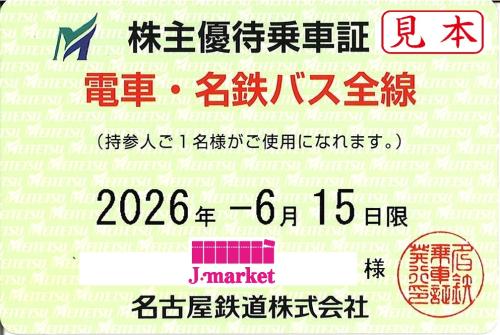 名古屋鉄道(名鉄) 株主優待乗車証 定期券式(電車・バス全線) 2026年6月15日まで